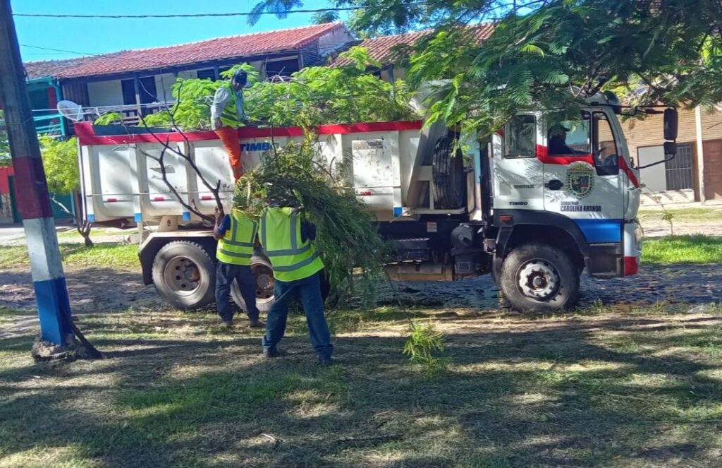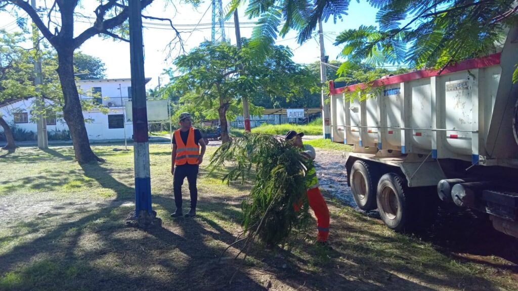 Posterior al intenso trabajo de desmalezado y limpieza en la plaza España, procedimos al retiro de las ramas secas.